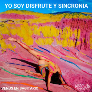 Venus es Amor, Atracción, Magnetismo, Arte, Belleza, Sexualidad, energÃa Femenina, presente en todes los Seres. Venus Invita e Incita, sugiere y es Receptiva, abriéndose plenamente a Compartir. La Diosa es Ser en Apertura, Danzando y Fluyendo con la Vida. Dar y Recibir en ArmonÃa, siendo Presencia, Aquà y Ahora.